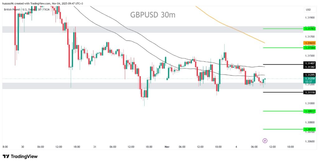 السيناريو الأول: بيع بكسر 1.3111 مع أهداف 1.3091 ثم 1.3072