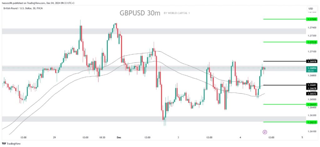 Scenario 1: Selling the pound dollar with a break and stability below the 1.26681 level, targeting the price of 1.26437 and then 1.26215